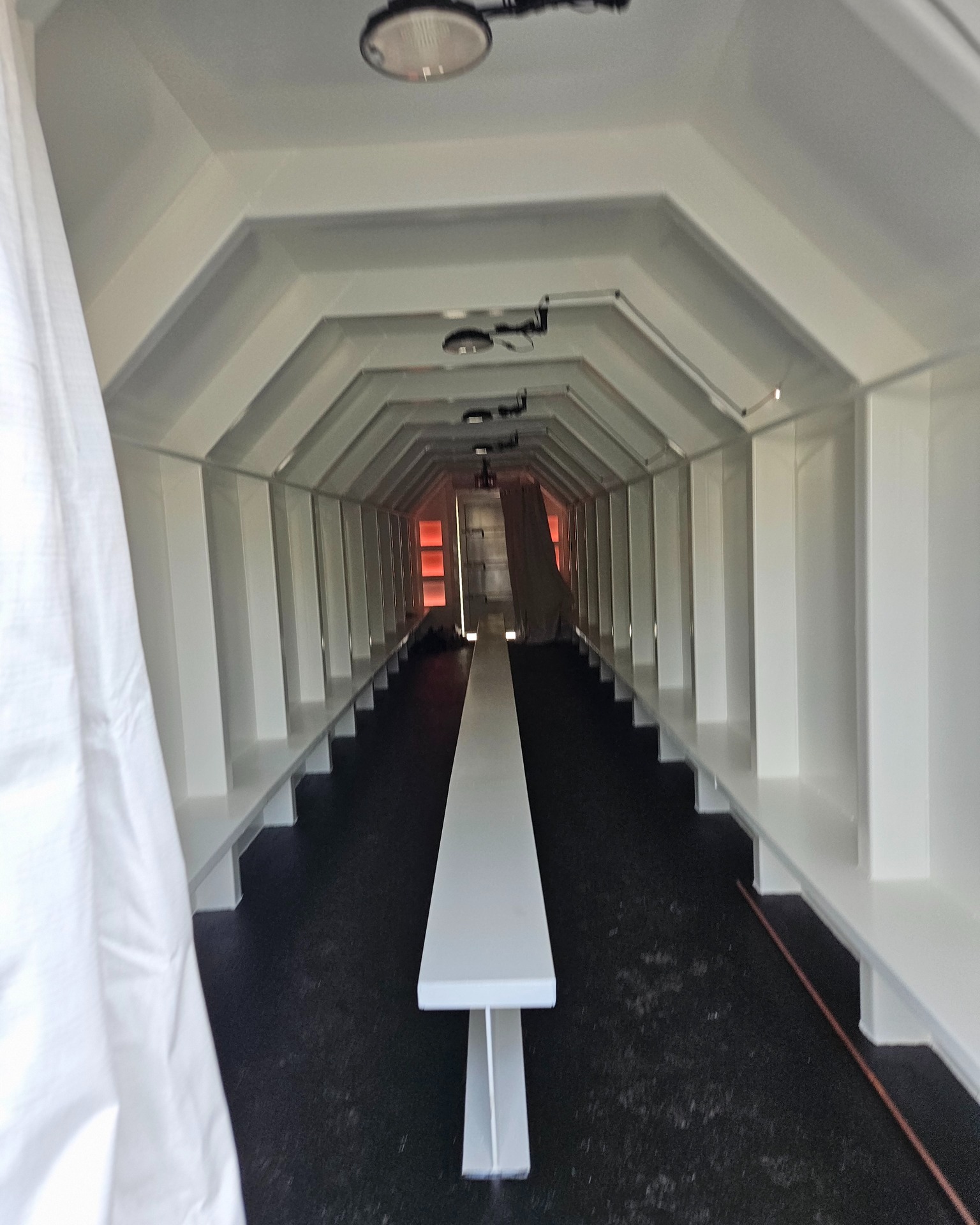 - Field deployments — shelters being transported, anchored, and made ready for service.