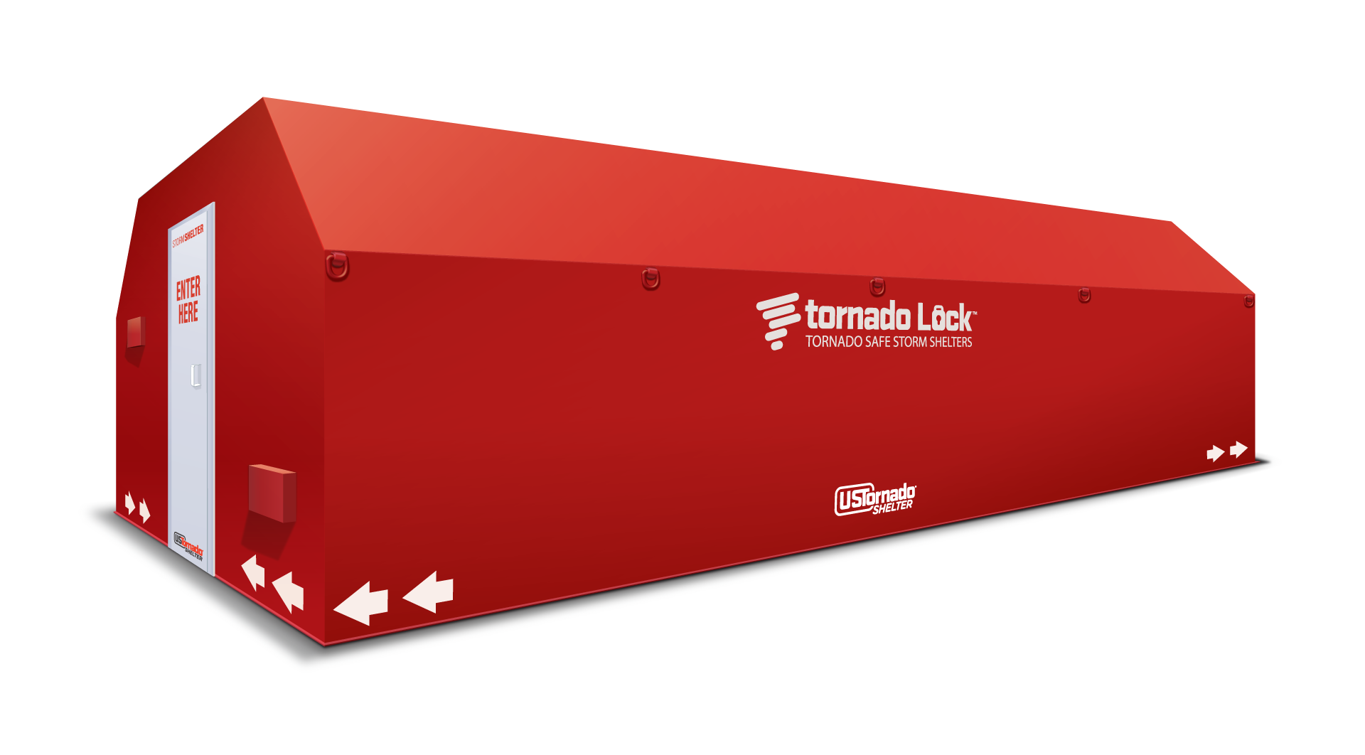 Crowded shopping centers, classrooms, and community centers, teeming with frenzied guests, are some of the worst places to be during a tornado. Panic-stricken populations, screaming for refuge and relief from 250-mile-per-hour windspeeds, ensures sheer chaos and pandemonium as people scramble for safety. Our 10 x 30 community storm shelters adds a welcomed measure of calm during tumultuous times. Comprised of superior 1/4″ steel plating, large, utilitarian tornado shelters can protect dozens of employees and customers with no time to spare for eluding destructive storms and tornadoes. Community shelters can be easily unloaded and installed in a few short hours. By strategically placing a community shelter near exits or commons areas, you can protect up to 100 people without impeding workflows. Hunker down from the next storm with U.S. Tornado Shelters.
